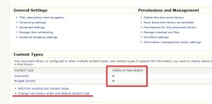 There are 2 properties in SharePoint that affect the visibility of content types in these 3 places. (Well actually just 2 places – as the list of content types when uploading and when editing properties is the same – they are actually the same page). These are: