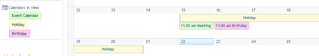 2. Create another calendar view, and filter to show only items of event type Holiday