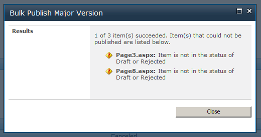 – When the Bulk Publish/Unpublish Succeed, if I clic on the Close button on the Dialog, it throws the exceptions