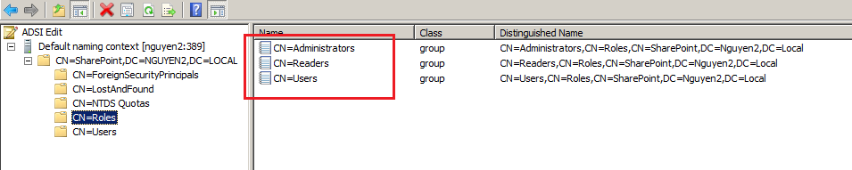 In AD LDS, by default there are three roles, Administrators, Readers and Users, as shown below.