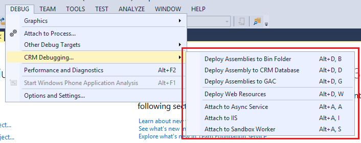 - Deploy Assembly to CRM Database – the assembly will be updated in the CRM database, but the debug file will not be copied to the CRM’s Bin folder.