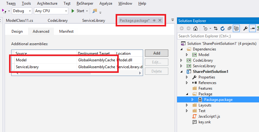 - Other assemblies that are included in the SharePoint Package.package file with the Deployment Target set to Global Assembly Cache