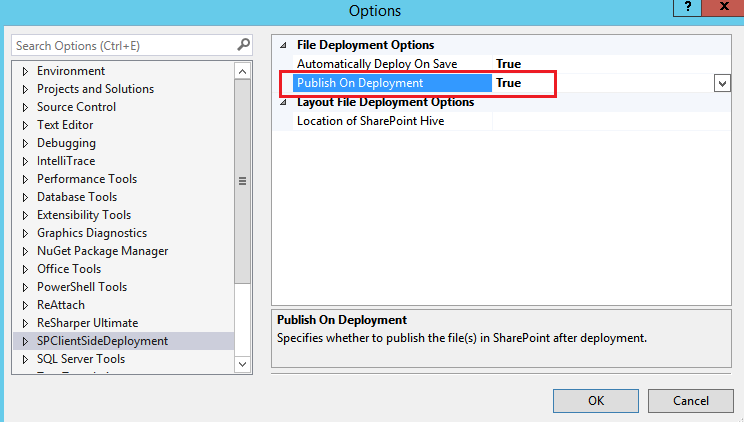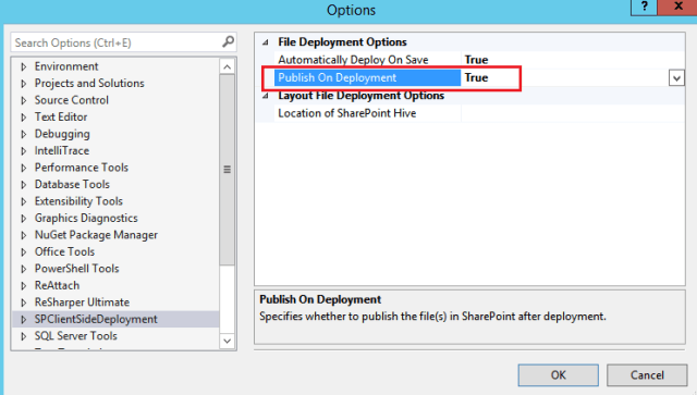 To enable this option, go to Tools \ Options \ SPClientSideDeployment, and set the Publish on Deployment option to true.