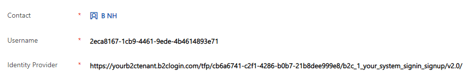 The Username and Identity Provider fields are used to locate the matching Contact record for the incoming identity.
