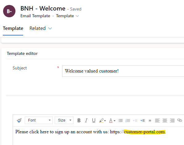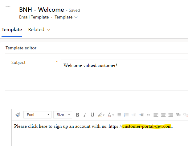 For example, let say you have a ‘Welcome’ email template that is sent to new customers. In this email there is a sign-up link to your Customer Portal. In TEST, you’d want the link to point to the TEST instance of the Portal; and in PROD, you’d want it to point to the PROD instance.